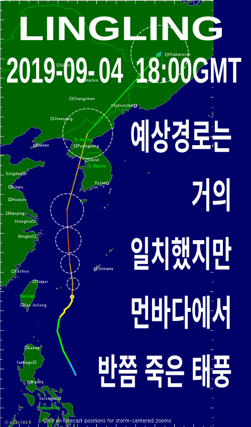 Typhoon LINGLING was predicted as a Category 3 super-strong typhoon, but its power weakened from the distant sea, passed the West Sea at a fast speed, and died off the coast of North Korea and was immediately destroyed.FRANCISCO, the typhoon that suddenly lost the middle part of it and died when it reached the sea off Busan.Typhoon DANAS suddenly died off the coast of Mokpo